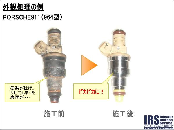 金属ボディのインジェクターのみが対象となり、錆等により痛んだ表面を、研磨と防錆コーティングにより美しい金属光沢のある表面に仕上げることができます。添付の画像のように塗装がはがれたり、錆がひどいインジェクターがピカピカになります^^