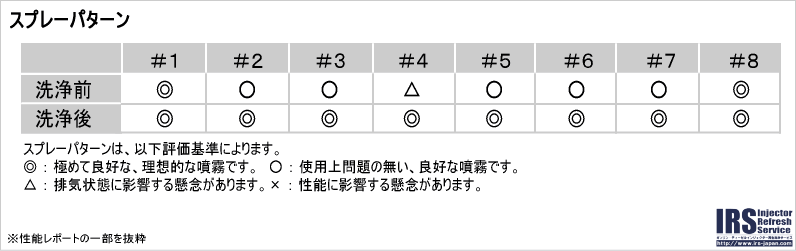 K様の話によると、インジェクターの洗浄と同時に、点火系等もメンテナンスされたそうです。今回、車両不調が回復していることから、インジェクターの噴霧の悪化も、この不調の原因のひとつではないかと推測されます。