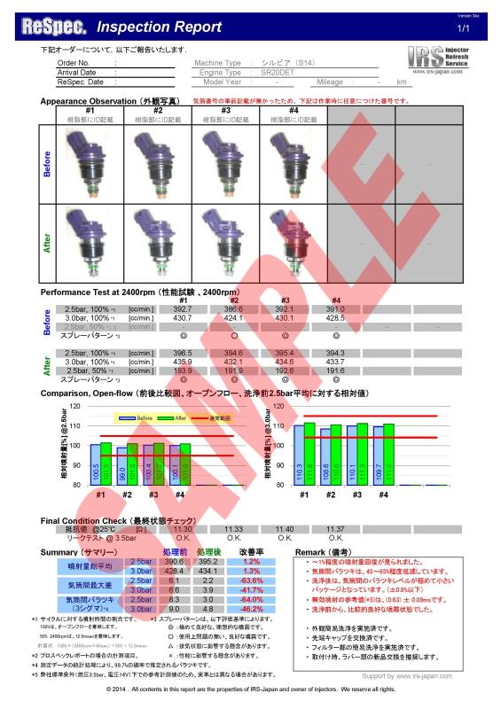 今回ように、インジェクターの状態が分からない、あるいは状態が悪いことが予想されるケースでは、性能が回復しないというリスクもあるため、性能レポートつきがお勧めです!!