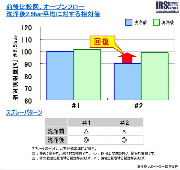 洗浄前#2のインジェクター先端から燃料漏れが見られましたが、施工後は回復。