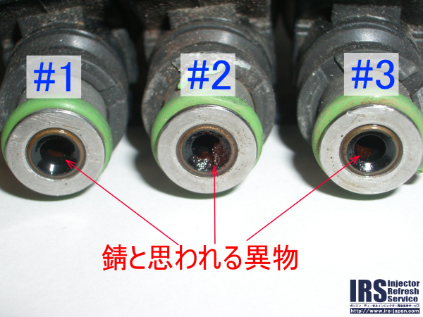 インジェクターの性能を確認したところ、3本すべて正常に噴射しない状態でした。おそらく、このインジェクターの動作不良が、『エンジンの噴け上がりの悪化』の原因と推測されます。