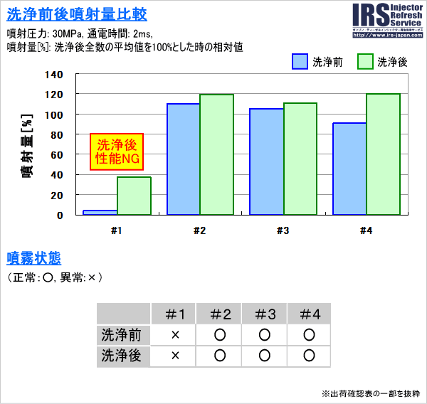 <施工前後のインジェクターの性能比較>