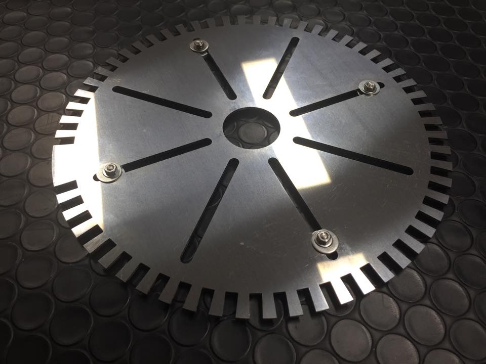 試作品では、バイクのドリブンスプロケットで代用していたので、信頼性・精度ともに、かなりの進化を遂げています。