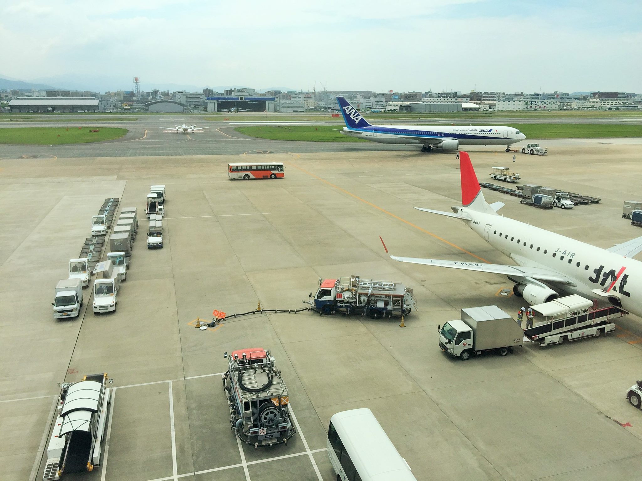 出発まで少し時間があったので、福岡空港の展望台からどれくらいディーゼル車両が走っているのか見てきました。展望台の他の方々は、飛行機を一生懸命撮影する中、私はバスに注目して撮影です^^