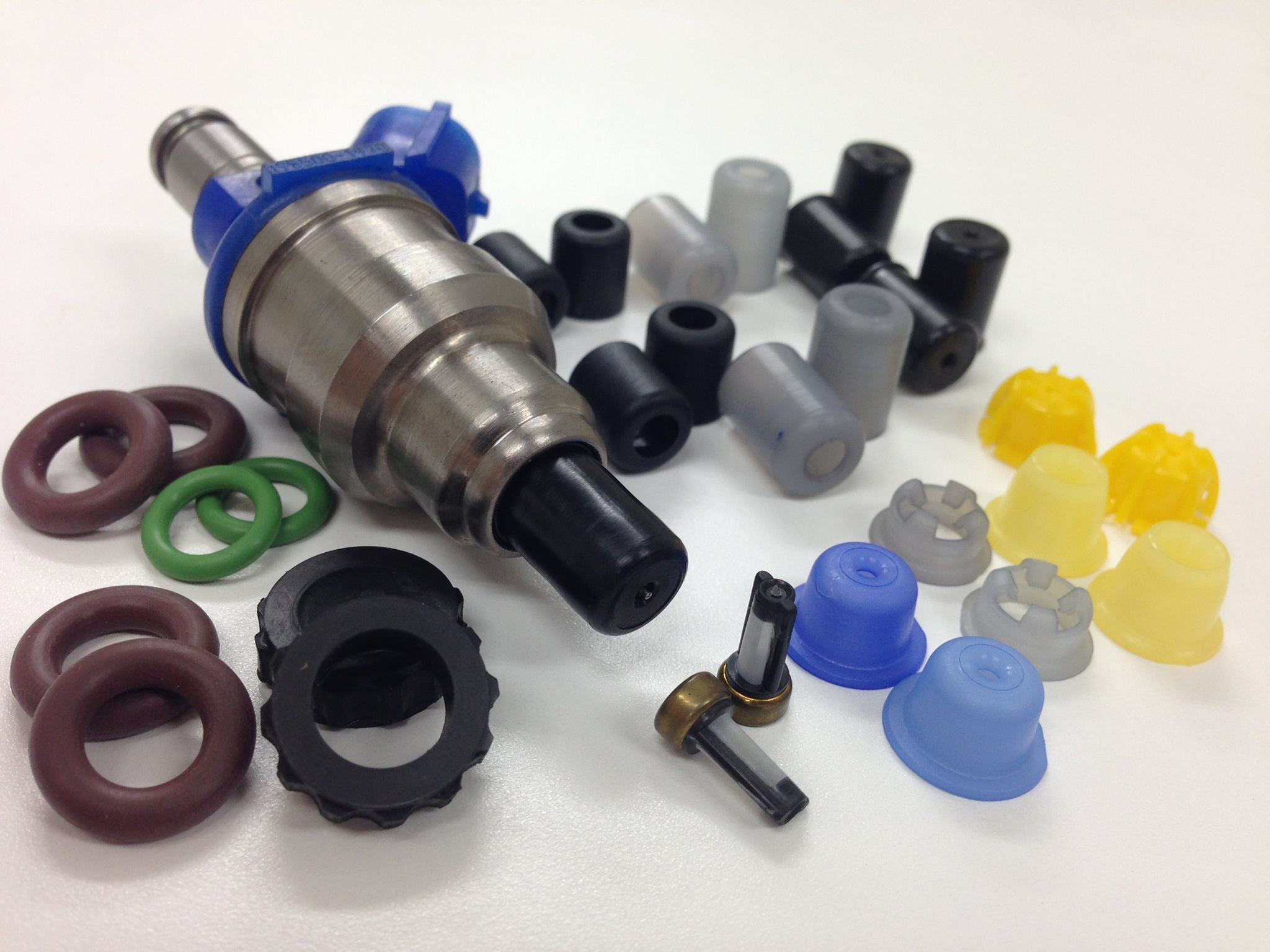 現在、使用しているパンフレットを作成したころに比べ、在庫として保管しているインジェクターの種類や、ショートパーツであるフィルター、先端キャップ、Oリング等の種類も増えているため、写真を新しくする必要が出てきたためです。添付写真のショートパーツは、在庫のごく一部なのですが、それにしても多くの種類があります^^;