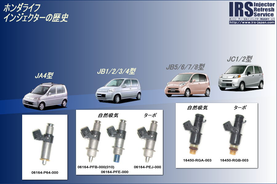 車種ごとにインジェクターの歴史を紹介するIRSならではのこのコーナー。久しぶりの掲載ですが、本日の第5回目はホンダライフです。今までスポーツ系の車両ばかり紹介してきたので今回は軽自動車にしました。それではスタートです。