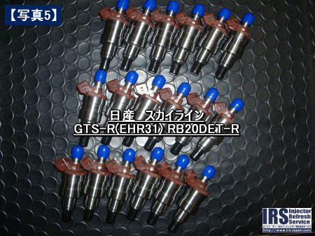 長期放置車両。洗浄前2本に噴霧異常が見られましたが、洗浄後は全て回復。BNR32、BCNR33のスカイラインGT-R用インジェクターにおいて懸念される、カプラとボディの継ぎ目からの燃料漏れも見られませんでした。