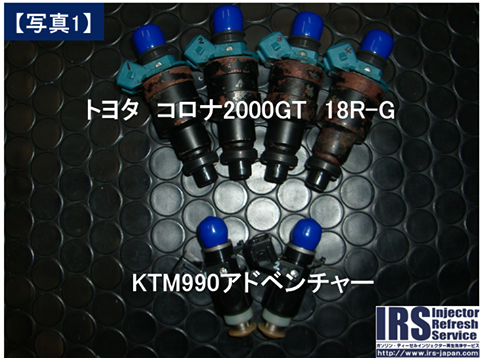 洗浄前4本に噴霧異常があり、その中の1本から燃料漏れが見られました。洗浄後は、良好に回復。