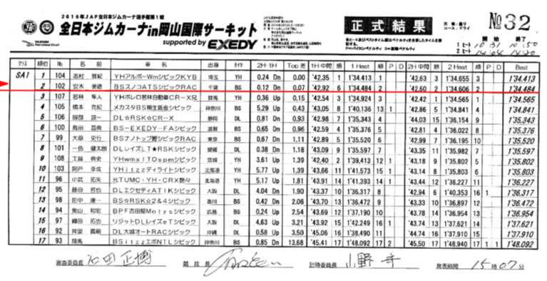 前半好調であったものの、後半の最終コーナー部分と終盤のパイロンセクションでタイムロスがあり、第1ヒートから0.1秒タイムダウン。
