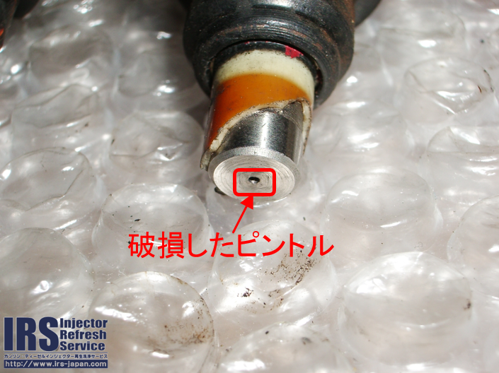 過去に何度か紹介していますが、先日弊社に到着したインジェクターの中に、ピントルが破損したものがありました。通常、先端キャップが付いていればピントル部分が保護されるのですが、その先端キャップが破損などにより無くなってしまった場合、ピントル部分がむき出しになるため、破損する可能性が非常に高くなります。