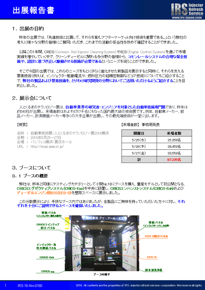 弊社が出展した「人とくるまのテクノロジー展2016」につきまして、出展報告書を作成しましたので、この場を借りてご連絡いたします。