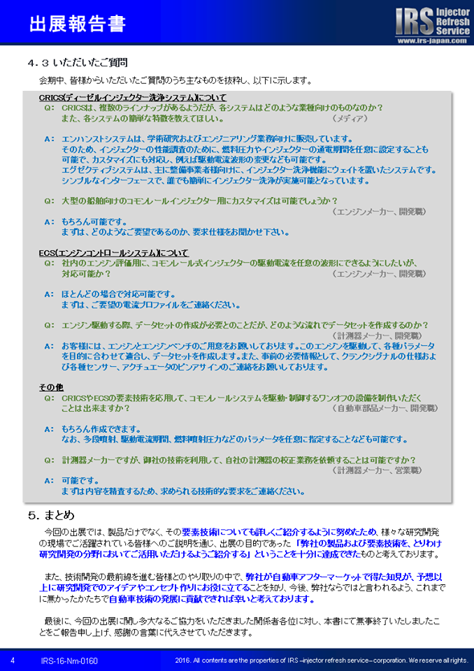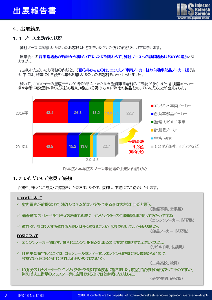 お忙しいことと存じますが、会期中弊社ブースまでお越しいただいた皆様はもちろんのこと、ご都合がつかずお越しいただけなかった皆様も、報告書をご一読いただけましたら幸いです。