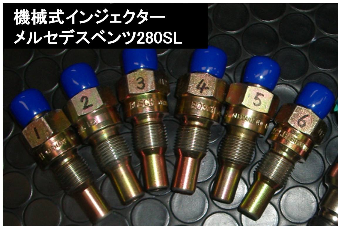 300SLは1950年代に登場したスポーツカーで、ガルウィングドアと初めて採用されたガソリン直噴エンジンが特徴です。この直噴エンジンには、ボッシュ製の機械式インジェクターが使用され、これがガソリン車初のインジェクターになります。当時の画像が手元にないため、参考として、300SLの後継機種である280SL向け機械式インジェクターを紹介します。
