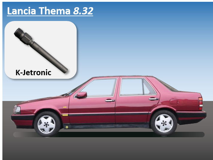 ランチアテーマは、今からおよそ30年前に販売されていたセダンタイプの乗用車です。その中の8.32というモデルには、なんとフェラーリのV8エンジンが搭載されており、そのエンジンにKジェトロニックが採用されていました。その車両価格も、通常グレードのおよそ2倍の1000万円弱という、とんでもないモデルでした。