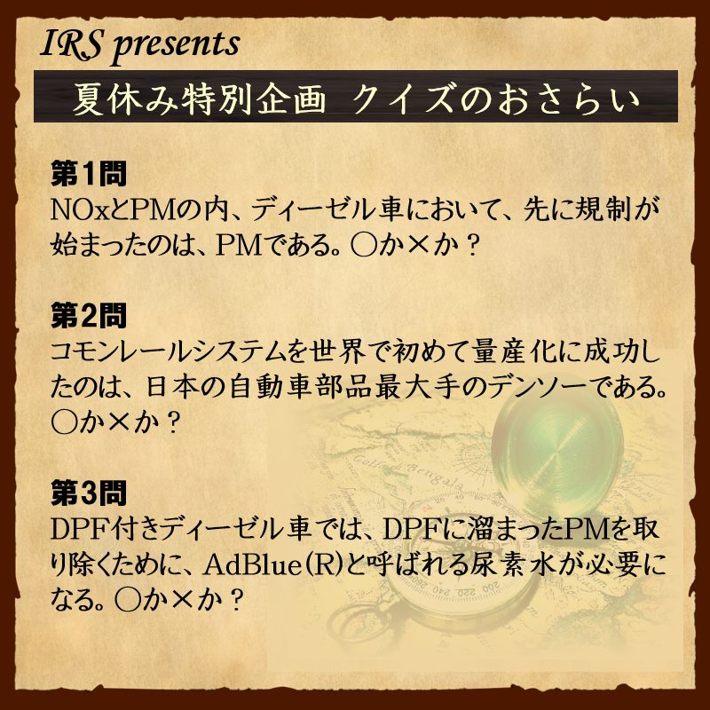『ディーゼルクイズ IRSオリジナルグッズプレゼント!!』は、いかがでしたでしょうか?