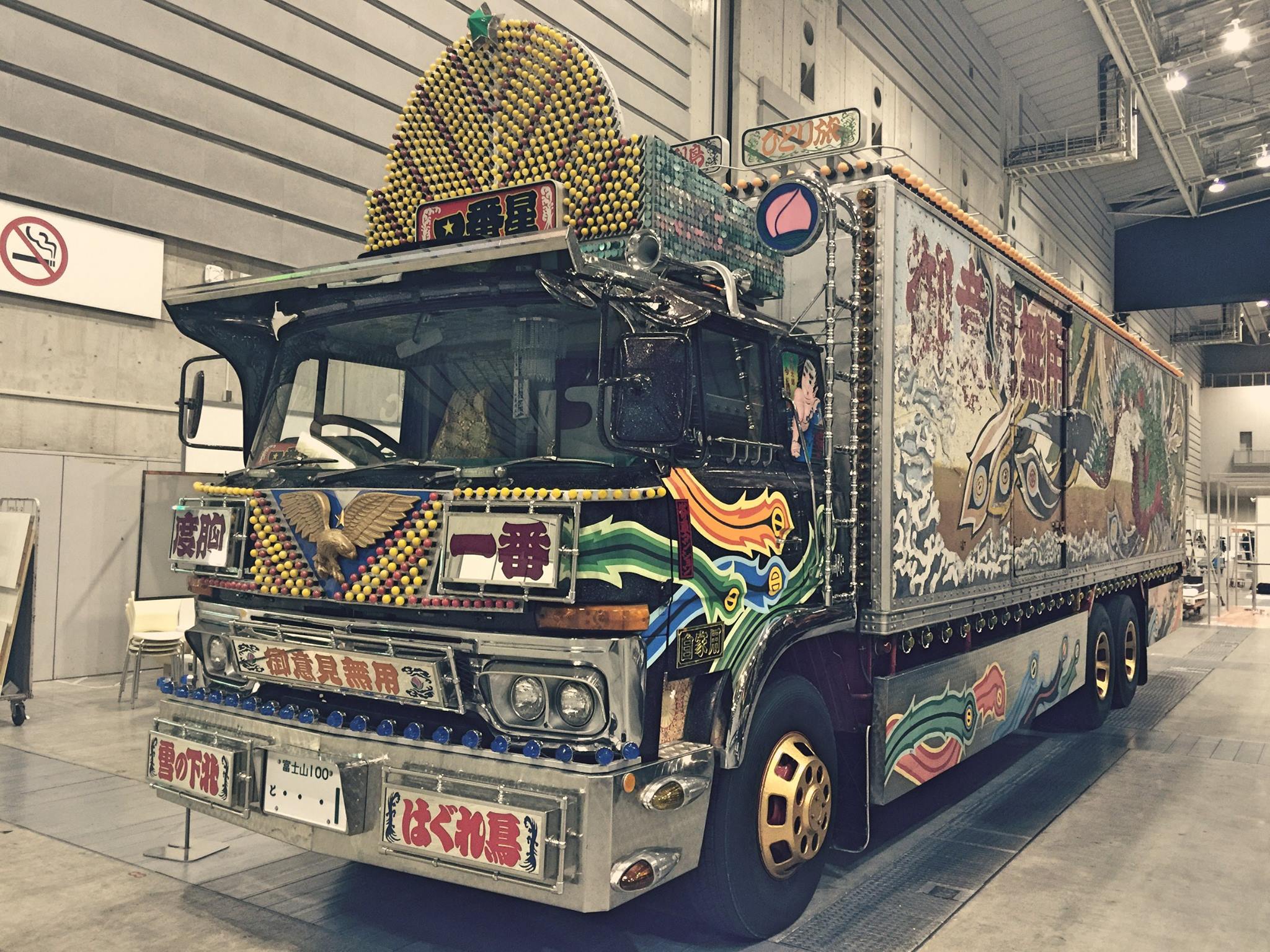 展示会場では、トラック野郎の一番星が特別展示されるのですが、搬入日ということでゆっくり見学できました^^