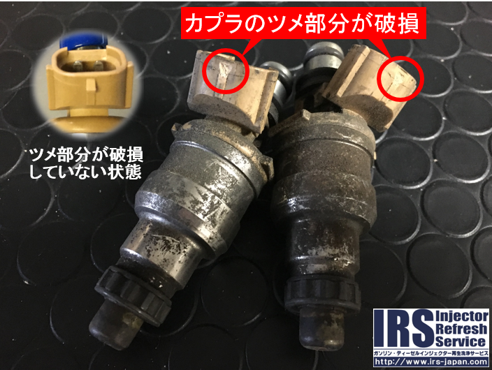 写真は、先日下取りとして返送いただいたインジェクターですが、カプラのツメ部分が破損しており、下取り品として回収することができませんでした。