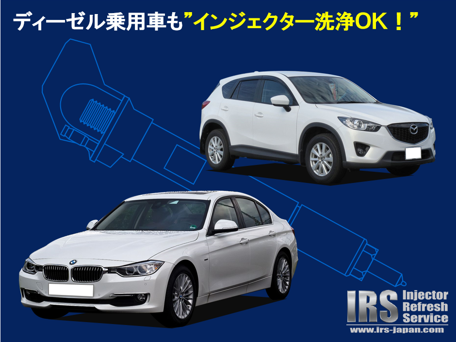 国産車ではマツダ、輸入車ではベンツ・BMW等でクリーンディーゼルを搭載した乗用車の割合が増えてきました。そのため、最近少しずつではありますが、これらのクルマについて、『インジェクター洗浄できますか?』との問合せをいただくようになりました。