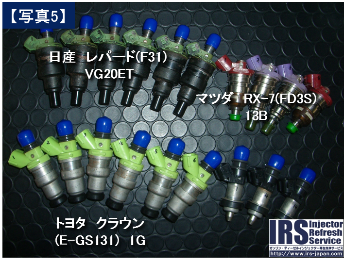 過走行のため、エンジンオーバーホール中。そのついでに洗浄したいとのこと。 洗浄前、1本に噴霧異常が見られましたが、洗浄後は良好に回復しました。