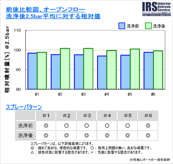 洗浄後、2%程度の噴射量の回復と、噴射量バラツキの低減がみられました。