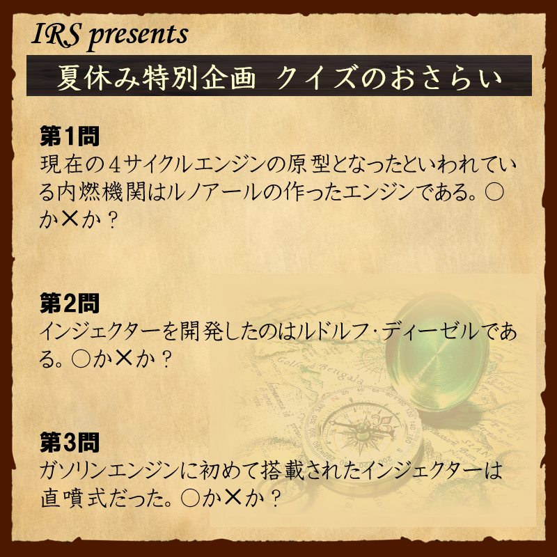 応募方法『インジェクタークイズ IRSオリジナルグッズプレゼント!!』