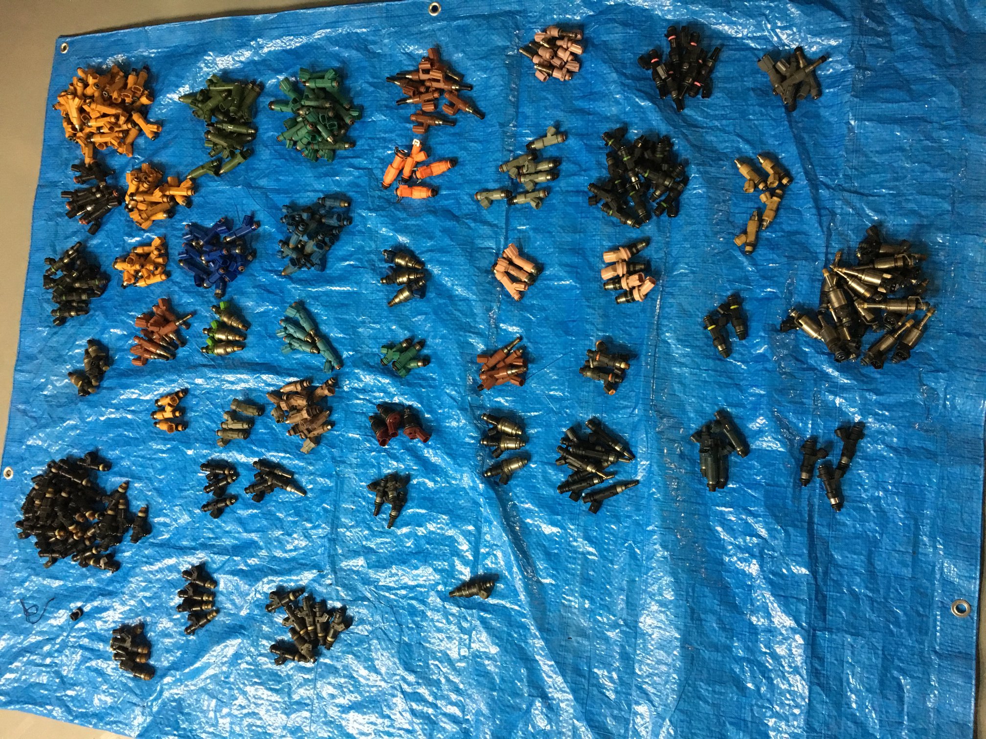 写真のインジェクターは、リビルトエンジンを扱われている企業様から、定期的に買い取りをしているもので、ちょうど仕分けが終わったところを写真に収めました。