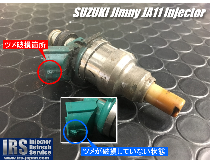 本日、届いたスズキジムニーJA11用のインジェクター。その内の1本について、カプラのツメが破損していました。