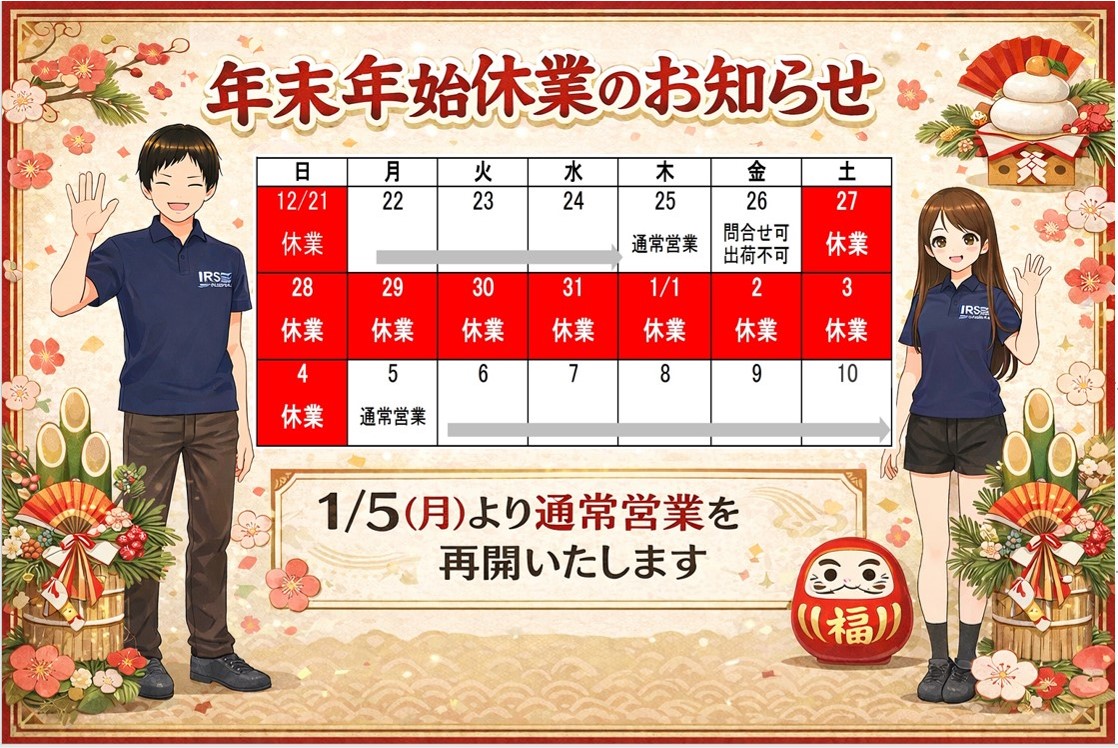 弊社では、2025年12月27日(土)〜2026年1月4日(日)まで、年末年始の休業とさせていただきます。